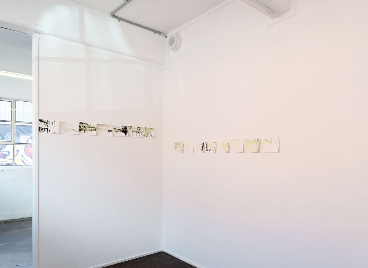 ‘Between the sky and the ground II’ is an exhibition conceived to operate like a film, encapsulating everything that happens between the sky and the ground. The work is made up of component images that are placed together in response to the available light in Bus’ Gallery 4. Each image loosely refers to another kind of image, which is repeated, complicated, or continued.