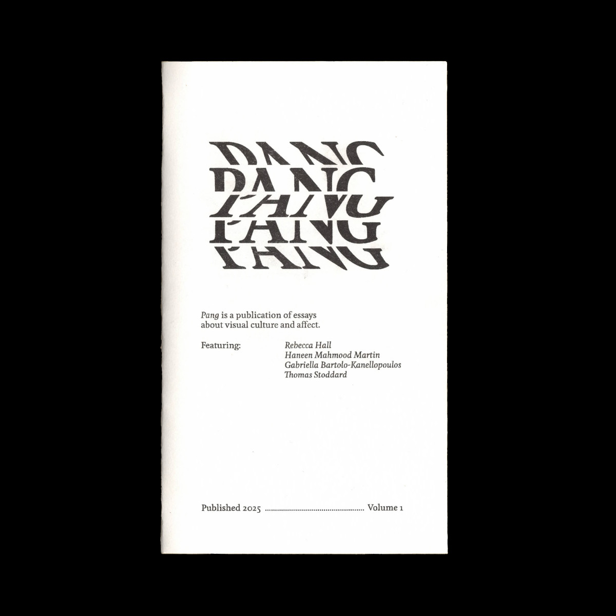 Pang is a publication of essays that are centred on affective responses to the visual world — that is, visual material that elicits an immediate, physical, emotional response, and using that “panged” feeling as a jumping-off point into wider exploration into how art, media, aesthetics, and the wider world around us can move us, shift our perceptions (of the self, or of culture, social paradigms, political understandings, history), enable critical thinking, and experience pleasure, disgust, and revelation.