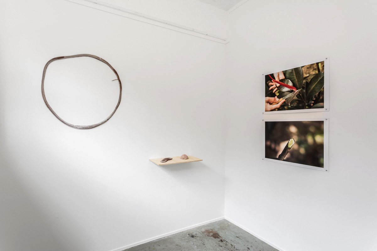 Rubber is collected from the garden and used to recreate products and consumables: bike tyre, hot water bottle, sneaker sole, ‘eraser’. The intimacy of these objects underscores a personal responsibility for consumption and the political and environmental problems of globalised industries. In the gallery context the work asks how artistic practices are implicated in environmental exploitation and how they could be reconfigured in a sustainable and renewable way.