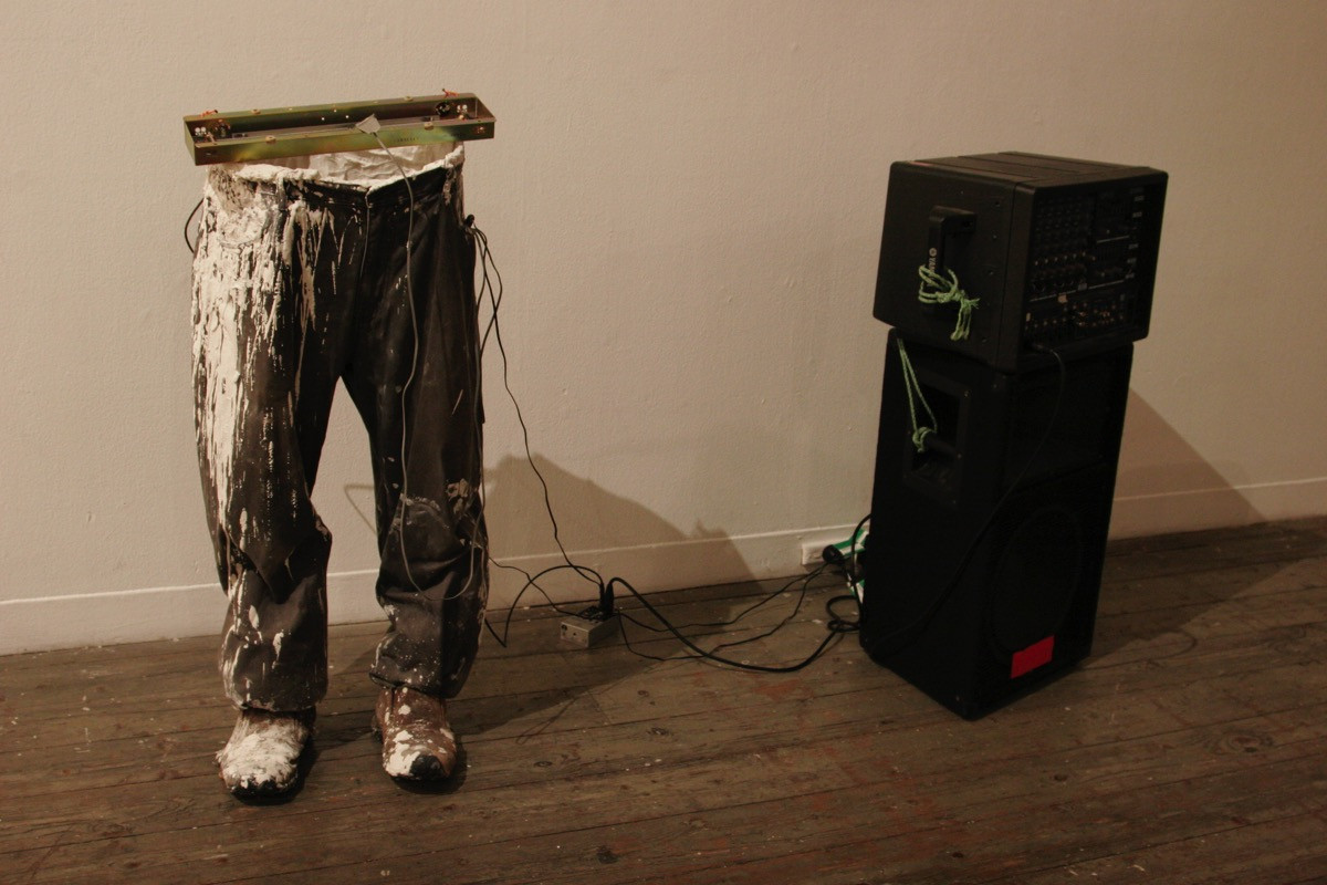 Each of Rod’s subjects has donated items of personal clothing for this project. Plaster-coated T- shirts, pairs of pants and shoes capture the presence of each artist. Junk apparatus and specific choices of material provide insight about the artists’ performance style. The reciprocal exchange of dialogue and objects between Rod Cooper and his subjects creates a secondary presence in sound, material and entity.