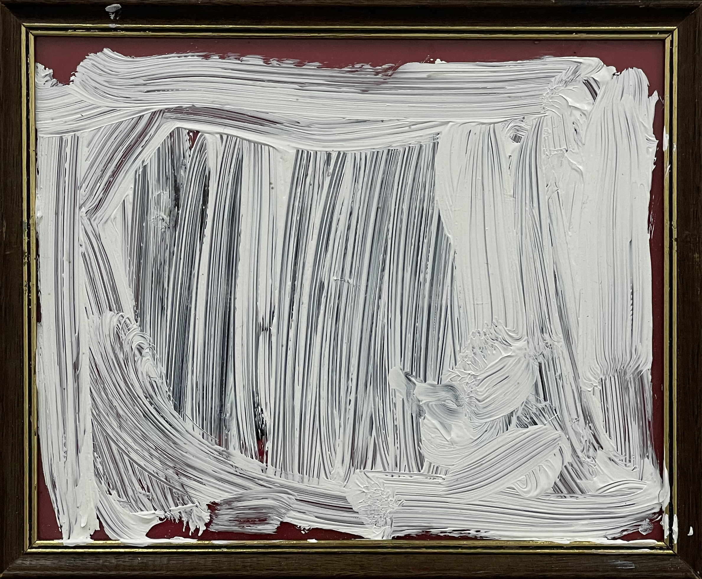 Acrylic paint on glass with wooden frame and paper